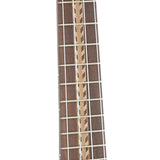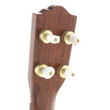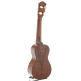 An impressive soprano ukulele with high end appointments and terrific sound, this instrument compares favorably to ukes costing twice as much. Features a lightly constructed body of highly flamed, all solid koa and a mahogany neck. Premium details include "rope" style binding and rosette, koa bridge and fingerboard, fancy wood marquetry, planetary geared tuners, and a thin nitrocellulose lacquer finish. A truly remarkable instrument.